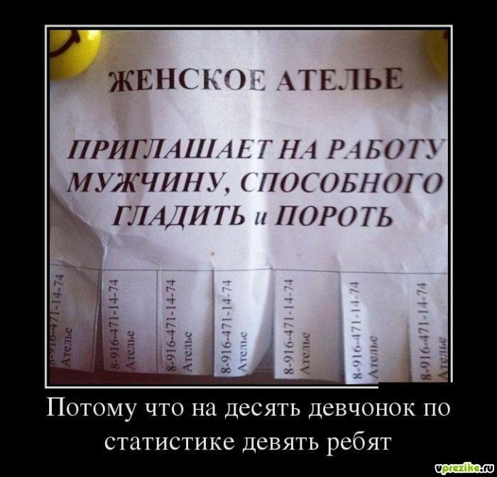 объявление о приглашении на работу мужчины в ателье